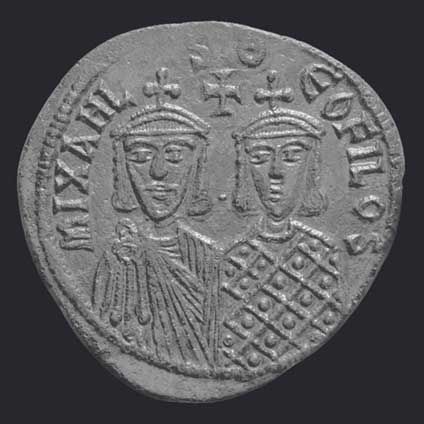 | Sear | 1652 F ₤15 VF ₤35 | Л.с. MIXAHL S ƟЄOF погрудные изображения Михаила II в хламиде слева и Феофила в лоросе справа; оба в коронах с крестами. Об.с. большая литера M, вверху крест, внизу Ɵ. | |||