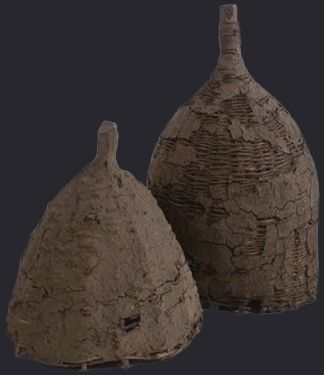 | В большинстве источников упомянутый объект идентифицируется как улей. И, действительно, его форма очень напоминает простейшие ульи-сапетки, которые дошли до нас со времен древности. Их плели из ветвей подобно корзинам, а сверху, как правило, покрывали слоем глины. В основании такой конструкции находится отверстие для пчел. За вытянутую верхнюю часть улья можно браться рукой. | ||||||